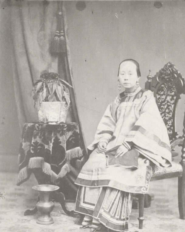 这张照片中的女性就是穿着比较符合中国传统装束的一个女人,她穿着袄裙,裹着小脚,从面相上来看,就是一个比较贤惠的妻子。