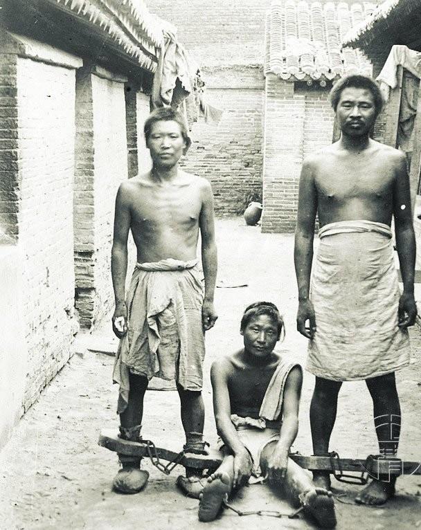 这张照片你要看清楚,这其实是三个囚徒,他们都带着沉重的脚镣,这让他们逃跑很困难,也不知道他们犯了什么罪。虽然他们最近的日子都不好过,但是他们依然稳稳的目露凶光。