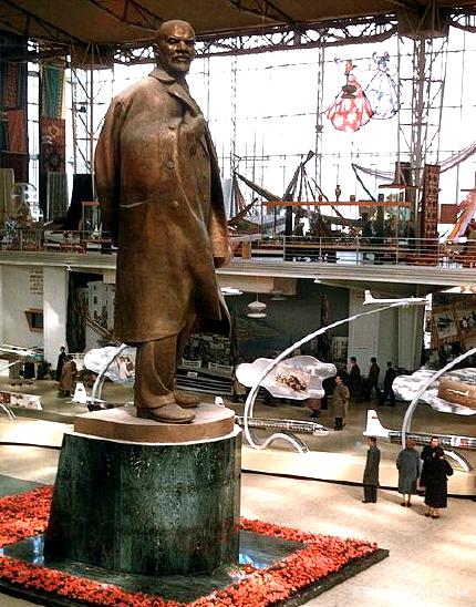 苏联展品的特点是高大,其中包括列宁等英雄人物的雕像。