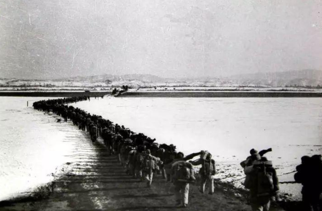 就在此时,浮桥边值守的两名边防哨兵突然高声大喊:“前面的过江人员,请出示出境证!”这可把黄朝天问住了:“什么?带兵过江去打美国鬼子,还要什么出境证?!”便不理会两名哨兵,继续向前走。