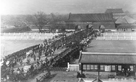 《辛丑条约》签订后,慈禧认为北京安全了,这开始动身回銮。然而,两宫却恬不知耻,与狼狈出逃相比,回宫则极尽奢侈铺张而风光无限,犹如得胜还朝一般。清李希圣《庚子国变记》云:“八月二十四日,自西安启跸,仪卫甚盛,发卒数万人,各省所供献太后私财六七百万,尽辇之而东。”数万人的队伍,光行李车就有3000辆,浩浩荡荡,出潼关经河南、直隶,历时三个月回到北京。