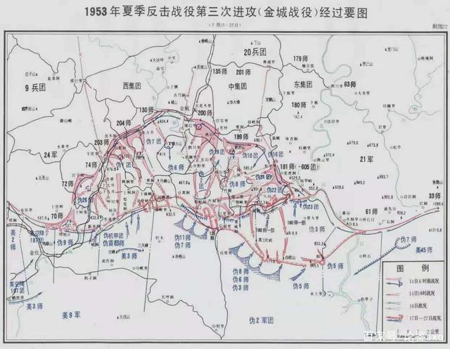 1953年7月13日,金城战役打响,我军首次翻身农奴把歌唱,让韩军尝到了大炮兵主义滋味。其中山炮、野炮、榴弹炮、火箭炮、加农炮1484门。换装了美式装备的韩军火炮只有900余门,双方炮火比例1.7:1,我军主要作战目标是西起金化东至北汉江由南朝鲜首都师及6、8、3师防守的阵地,教训自认为“宇宙第一”的韩军。