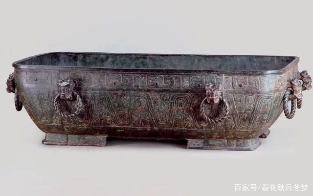 虢季子白盘,西周宣王时期青铜器,长137.2 厘米、宽86.5厘米、高39.5厘米,重 215.3 千克,盘内底部正中铸铭文 111 字,现藏中国国家博物馆