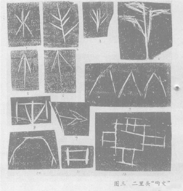 此外,二里头遗址的考古专家在很多陶器上发现过许多“刻画符号”,应该就是早期文字,分别表述数字、植物、器具、自然景象,在商代的甲骨文中均可找到相同和相似的字,已经有了表达一定思想意识的语言符号,可以称之为“原始文字”。
