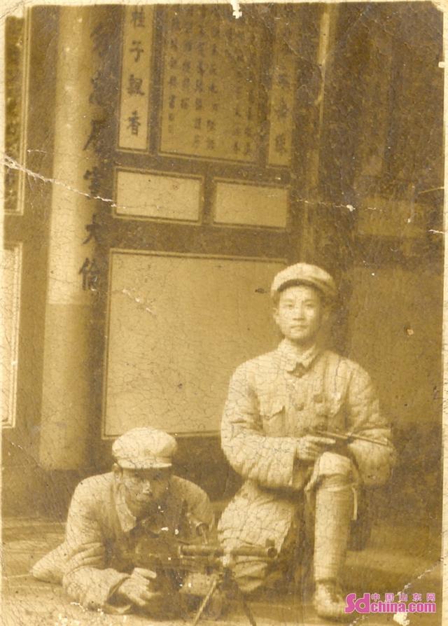 丁百进(左)和本家丁同云(右)穿军装的合影