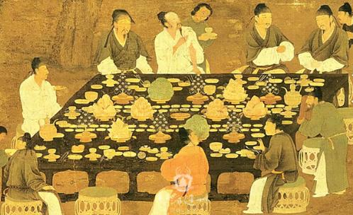 唐朝时期人们的主食大多是饼或米饭,肉类当然必不可少,羊肉是当时的主流,海鲜鱼类也在餐桌上。唐朝尤为著名的经典菜切鲙,正是今天也依旧火爆的生鱼片。善于打猎的唐人,时常也会烹制野味来加餐,甜点的种类也非常繁多。精致美味的糕点,就连官家都无法抵抗。宋朝的美食自不必说,这一时期丰富的饮食文化让今人也无比佩服。羊肉在人人追捧的潮流下逐渐成为高奢品,物美价廉的猪肉成了人们的另外选择,东坡肉的原材料正是肥美的猪五花。元朝的前身是游牧民族,这一时期人们的饮食也有所改变。乳制品与马奶酒成了餐桌的常客,面食与稻米存在更强,人们更是发明了炒菜这一绝妙的烹饪手法。此后的菜肴不仅味道更加精进,食物的营养也没有流失。