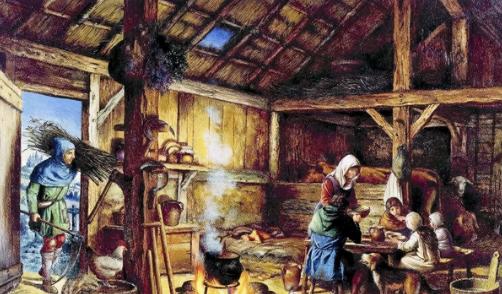 他们处理黑麦的唯一方式就是把它磨成粉末来做面包,这便是大名鼎鼎的黑面包。没有现代面包加入的黄油糖霜,就连酵母都没有,只有单一的黑麦粉。酵母在当时可是上层人士才能使用的珍贵食材,底层民众只能食用粗糙的黑面包。揉好的面团被架在火炉上直接烤,没有半分技术含量。由此做出的面包受热不均匀,更是直接焦炭化,这也是黑面包的由来。这种黑面包无比坚硬,里面的面粉更是无比粗糙,还有许多黑麦壳也在其中。但它可以长时间保存,是民众唯一的选择。