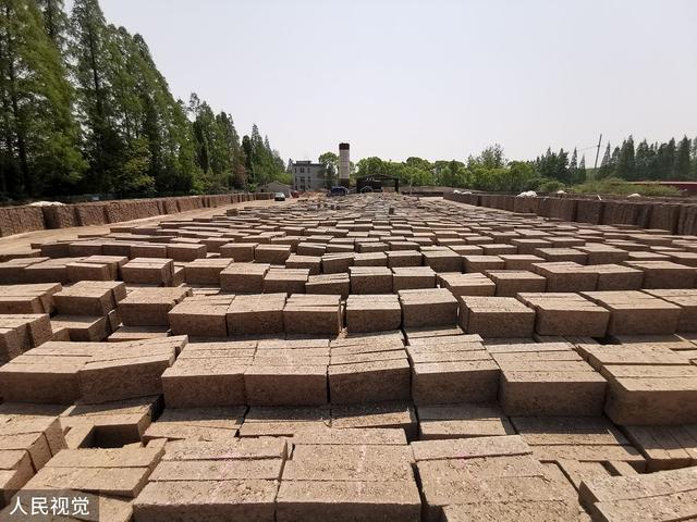 在用压力机出砖坯,用平板车人工推到晒砖场地,进行进行晾晒。