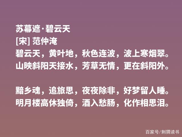 碧云天,黄叶地,秋色连波,波上寒烟翠。