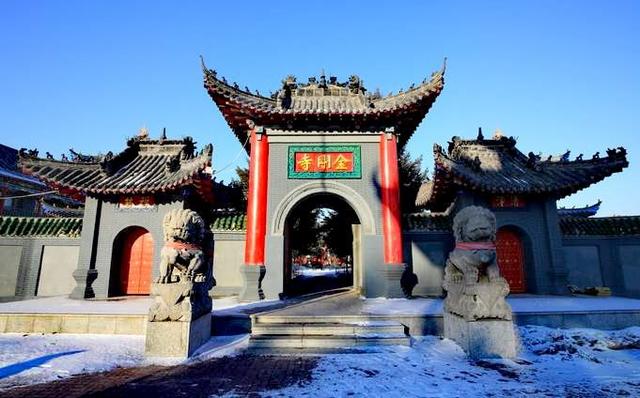 金刚寺,于1925年定海和尚创建。原是定海和尚住宅,后改建成了金刚寺。建筑面积有二千平方米,占地面积八千平方米。