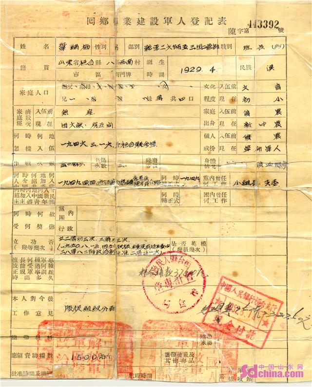 档案主人:巩绪梅,男,1929年4月出生,淄博桓台人。1946年3月参加人民解放军。跟随部队先后参加过解放淄博战役、济南战役、上海战役、福建战役、金门战役、淮海战役、开封战役等50余场战斗。在战车26师53团2营部担任班长,三次负伤。1949年4月,淮海战役结束后在江苏加入中国共产党,先后荣获二等功三次、三等功三次,1952年复员转业回到淄博。