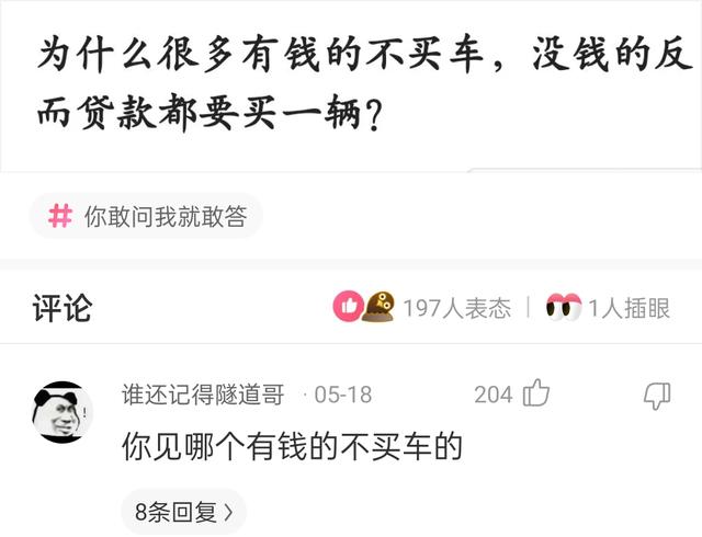 12:为什么很多有钱的不买车,没钱的反而贷款都要买一辆?