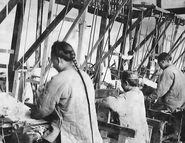 这是传统的纺织作坊,他们用的织机还是比较落后的,所以终将被时代抛弃。到了晚清末期,沿海的大城市出现了不少工厂,他们用机器作业效率高、成本低,这些小作坊受到了巨大的冲击。.