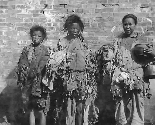 照片中的妇人流落在外,她们的身上的衣服已经烂成了碎布,浑身脏兮兮,其中都有几个饿的已经浮肿了,手里的瓶瓶罐罐成为他们唯一的财富。