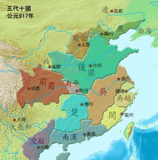 我们首先需要知道的是,五代十国并不是同时存在的。它指的不是一个朝代,而是介于唐宋之间的一段特殊时期,本质上其实就是唐朝末期藩镇割据和后期政治的延续。五代主要包括了后梁、后唐、后晋、后汉、后周,而十国主要是由前蜀、后蜀、吴、南唐、吴越、闽、楚、南汉、南平(荆南)、以及北汉十个政权构成。