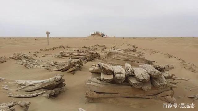 直到2003年有一支车队到罗布泊去执行一项秘密任务,路上偶遇一座上面密密麻麻地插着圆形柱子的沙丘,这荒无人烟的地方竟然出现如此诡异的景象。