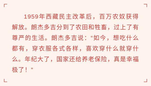 1959年3月28日,国务院颁布命令,在西藏施行民主改革,彻底废除“政教合一”的封建农奴制。从此,西藏百万农奴翻身得解放,将命运掌握在了自己手中。