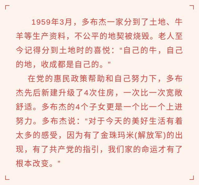 多布杰6岁开始就给农奴主打草料喂驴、干杂活,全家9口人挤在一间黑漆漆的房子里睡觉。因为家里穷,小时候的他没有鞋子穿,身上穿的是打满补丁的衣服,一点点糌粑仅够全家不挨饿。