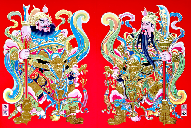 关羽和张飞的门神像流传范围也很广,他们二人都是历史上有名的武将,更是刘备的左膀右臂。