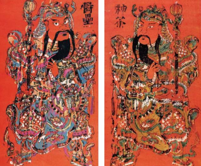 最早的门神是神荼和郁垒,此为桃人的化身,而桃木有辟邪的功效,所以他们在早期是很受人们信任的门神。