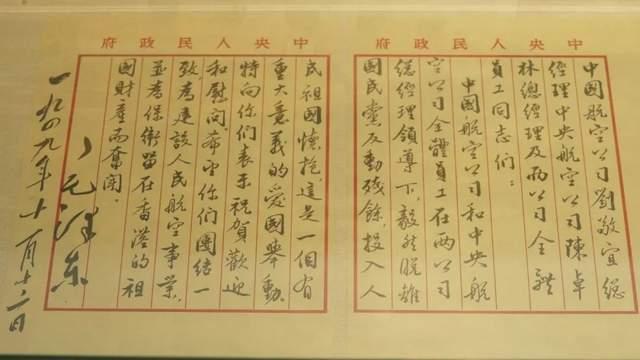 1949年5月27日,上海解放。军事接管委员会空军部部长蒋天然在中国航空公司总经理办公室残留的资料里发现了一张便笺:“我公司留存上海之飞机及各种设备,均应妥善保管,并清点造册,将来移交给新政权。” 这张字条意义重大。