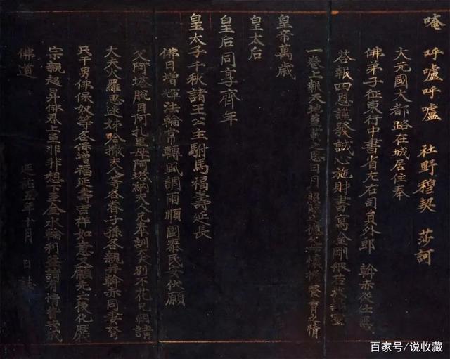 元延五年征东行中书省员外郎“斡赤从仕无”发愿磁青泥金写本《金刚般若波罗蜜经》