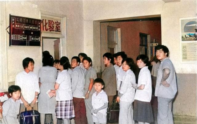 1979年的济南某医院,在化验室门口排队就诊的人们!看到那时大家的衣着都十分有年代特色,都是灰白色调的衣服!