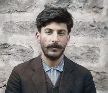 斯大林现存最早的照片,摄于1894年(16岁)。那时斯大林的目光还带着一丝丝迷茫与忧郁,与后来坚毅无情的神态有很大差别