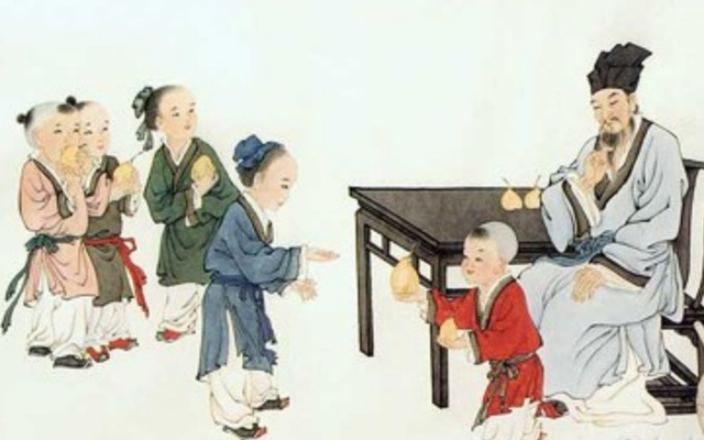 很多人都曾经学习过“孔融让梨”这则故事,孔融父亲的朋友送了他们一盘梨,父亲将这些梨分给这些孩子。在选梨的过程中,孔融直接拿起了最小的梨,将剩下的梨按年龄的大小分给自己的兄弟。当时孔融表示,自己小因此拿的梨也小,而哥哥们年纪大,所以需要拿大一点的梨。他的父亲对他自己拿最小的梨表示不理解。他却道,之所以这样,是因为需要谦让比自己年龄更小的弟弟。