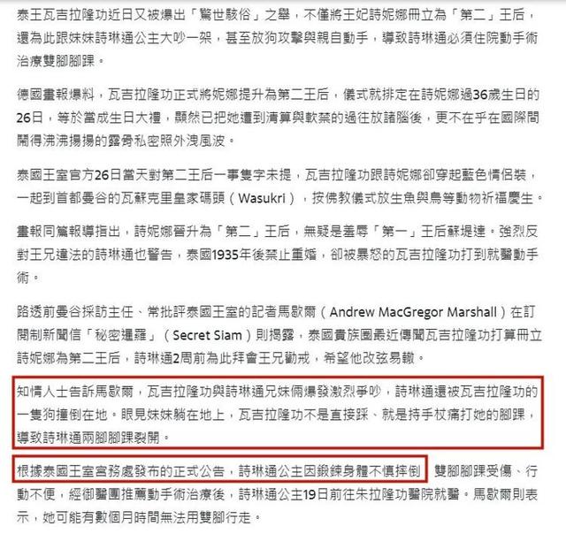 但是,今年年初,诗琳通公主受伤进入医院门诊,新闻媒体报道说她哥哥的吊带背心王受伤了。