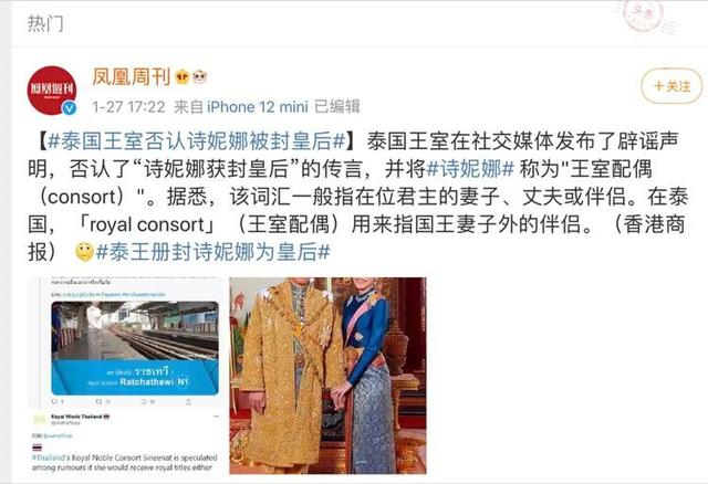 因此, 过去几天,泰国皇室散布谣言,泰国只有一位女王,诗妮娜只有妃子。