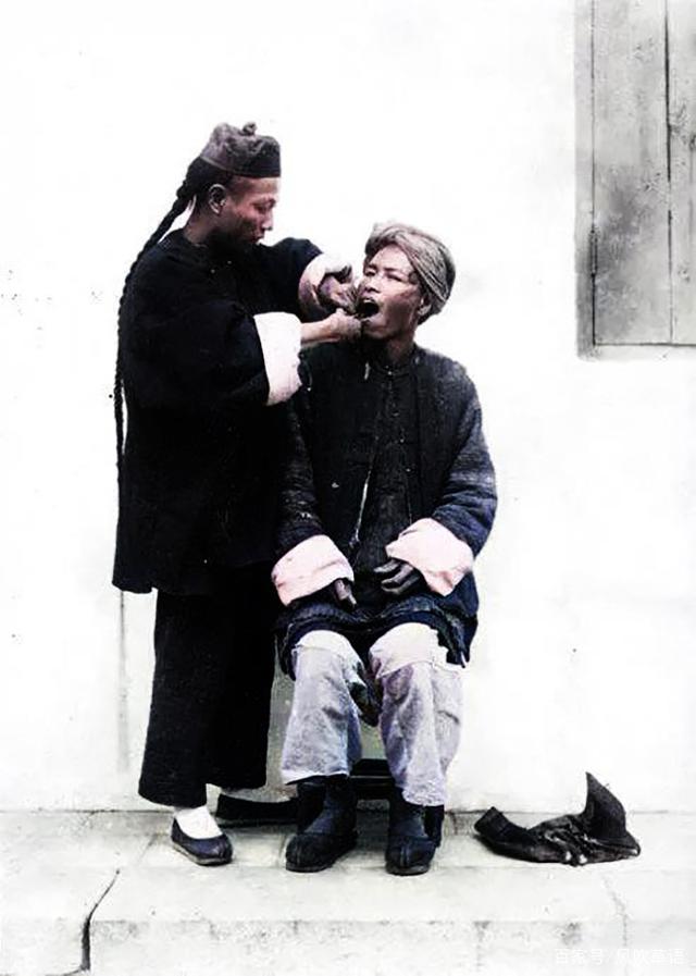 “牙痛不算病,痛起来真要命”。旧时的街头常见这种流动的牙医,随坐随拔,基本没有消毒流程,卫生堪忧。