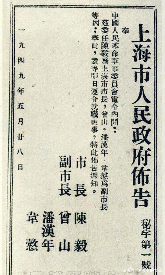 当时毛泽东、周恩来等领导人对陈毅的气魄非常欣赏,就决定让陈毅担任将来的上海第一任市长了。不过一切还有变数。当毛泽东得知陈毅制定的上海入城纪律后,陈毅的上海市长一职就板上钉钉了。