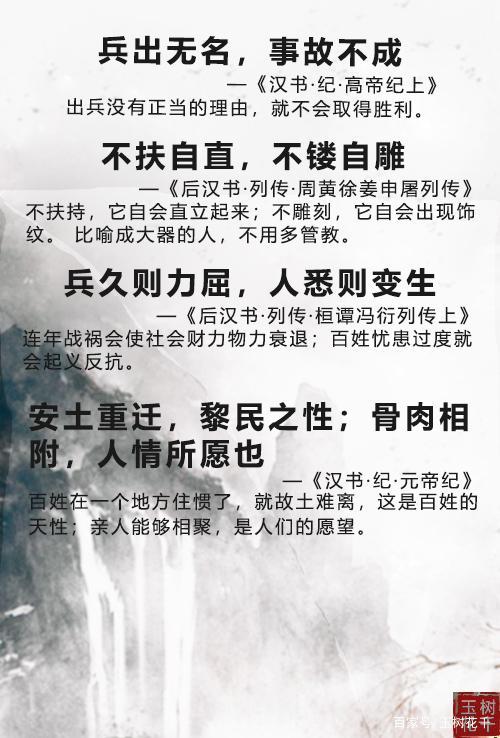 2.《玉树花千 《汉书》《后汉书》中富含深意的名言名句,带你仰望千年大汉气象》仅供读者参考,本网站未对该内容进行证实,对其原创性、真实性、完整性、及时性不作任何保证。