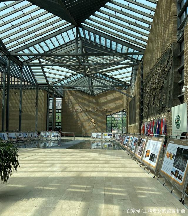 一楼顶棚是玻璃顶,还有一部分考古遗址区域上覆盖了玻璃,这样就很反光