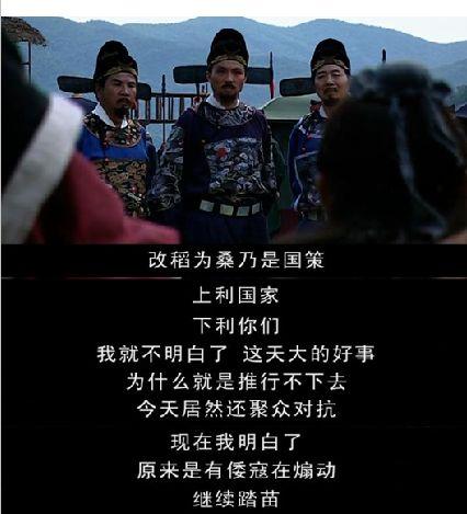 第二是严党里的庸才,主政浙江的郑泌昌、何茂才,目光短浅,贪婪成性。郑泌昌是布政使,负责浙江省主要的工作,相当于省长;何茂才主管一省的公检法,类似于今天的省政法委书记。这两个人都是小阁老严世蕃举荐的,属于“身后有余忘缩手,眼前无路想回头”的人,没看出来改稻为桑背后的凶险,反而想趁此机会捞一把。裕王要倒严,却不希望伤害百姓;皇帝要产丝绸补亏空,还要浙江平倭寇;严党要为皇帝补亏空,还不能把事情搞砸了让裕王一派抓住把柄。