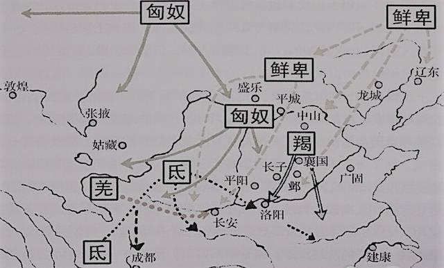 入侵中原的胡人以五股势力为代表,分别为匈奴、羯、鲜卑、氐、羌,他们纷纷在中原地区建立政权、据《十六国春秋》记载,入侵中原的胡人势力远不止五个,这段时期被记载为“五胡十六国,东晋十六国”,说明了建立政权的不仅是胡人,也有汉人,且数量远比十六个多。这便使得中原地区的民族构成发生了很大的变化。