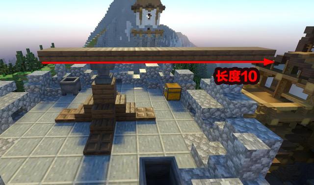 接下来我们在每个深色橡木楼梯的旁边各放置一个深色橡木活板门,这样我们巨弩的底座就建造好了,我们在深色橡木方块上面再放置一个铁砧,在铁砧的上方我们放置深色橡木半砖。这里要注意的是,如果巨弩发射的方向为准,我们从铁砧向着这个方向建造3格长的距离,再以铁砧为准向后建造7格长的距离,这样一共就是10格的距离。