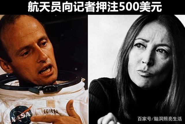 同时,意大利记者奥莉安娜·法拉奇还表示,阿姆斯特朗登陆月球之后说的“这对一个人来说只是一小步,人类的一大步”,这句话也是NASA编造的,对于这些质疑,阿波罗12号指挥官皮特·康拉德向意大利记者奥莉安娜·法拉奇押了500美元赌注,来证明登月的真实性,当他从走下登月舱的梯子时,说的第一句话是:“哎呀!伙计,这对尼尔来说很小,但对我来说却很长”,虽然皮特·康拉德赢得了这次赌约,可是奥莉安娜从未付给他500美元。