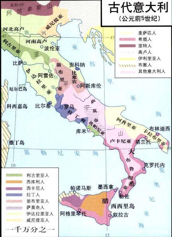 希腊人殖民地最早是在那不勒斯湾北部的皮特库塞岛,不久一部分转移到了对岸的丘米,然后就是和伊达拉里亚人的丘米战争。当然期间希腊人的殖民活动并未停止,毕竟希腊人城邦多,说起来都是希腊人,但是各个城邦各自独立,这样你一脚我一脚的很快就把意大利南部广大地区给占了
