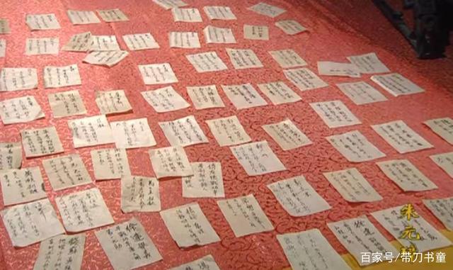 “小纸条”故事二:与陈友谅决战前,文武大臣齐聚大帅府,却不见了朱元璋,原来他猫在屏风后面,拿着一叠小纸条,正在逐个记录大家的“言论”,有主战的,有主降的,这些都将成为日后赏罚的依据。