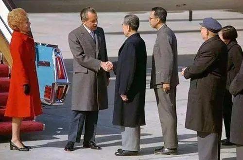 1972年2月21日,尼克松如期访华。在下飞机的一刻,尼克松紧趋前行,主动伸出手来与周恩来握手,敏感的摄影记者从不同角度定格下了这一历史瞬间。离开机场时,周恩来寓意深长地对尼克松表示:你的手伸过世界最辽阔的海洋来和我握手——25年没有交往了啊!