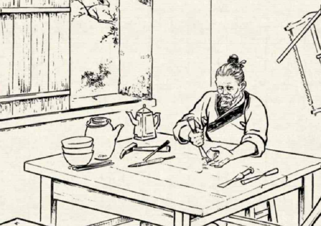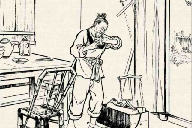 叩拜完毕,回来落座吃饭,今日鸡肉是一人一碗,主家并没有准备筷子,而是每人碗中放了个勺子,这样喝起汤也方便。李三才知道师傅不习惯用勺,就去厨房帮师傅要双筷子,木匠们见他对王一善这般孝顺,都禁不住夸赞。王一善很欣慰,见自己碗中的鸡肉较多,出于心疼徒弟,就把自己的碗换给了徒弟。工匠们见这对师徒如此亲密,心中都羡慕不已。