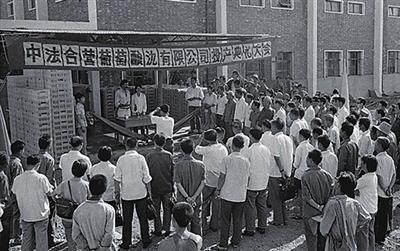 1980年8月,中国制造业第一家中外合资企业──中法合营王朝葡萄酿酒有限公司举行投产典礼。 张力 摄