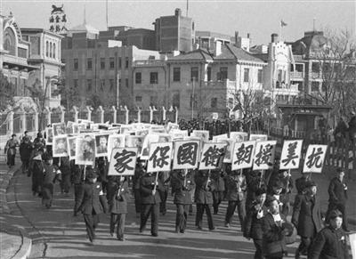 1950年12月9日,天津市工商界举行抗美援朝大游行,位置就在如今的中心公园。 本报资料图片