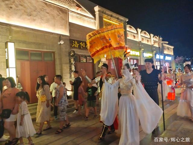 白天的朝歌老街,有点冷清,想来是天气炎热的原因吧。可是到了晚上,华灯初上,大批的游客不知从哪里冒了出来,热闹非凡。老街也汇集了各种美食,千层小火烧、柳州螺丝粉、桂林米粉、长沙臭豆腐、重庆小面、南京鸭血粉丝等地方名吃香飘千里。漫步朝歌老街,欣赏汉服走秀、小丑巡游、铜人行为艺术展演等各种精彩,领略古风今韵的完美融合。中原大舞台,餐饮和娱乐相结合,也有歌舞、魔术、杂技、二人转等演出。