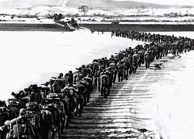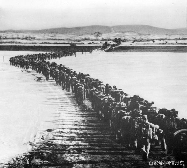 图为1951年3月,志愿军第15军第44师第130团通过安东鸭绿江大桥开赴朝鲜前线。这幅照片作者不详。