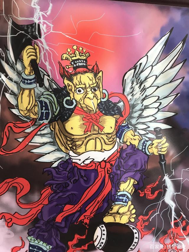 众人看见雷公身材枯瘦,和猴子差不多,长着一对翅膀,有着鸟一样尖尖的嘴,两只手跟鸡爪子一样,手里握着一个黑漆漆的锥子。