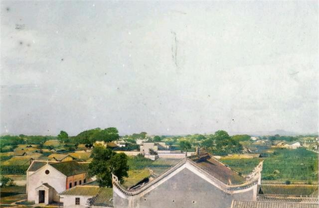 1933年湘潭郊外,一座座传统的“人字形”屋顶的湘潭民居,坐落在青翠碧绿的田野中,一片生机勃勃的景象!