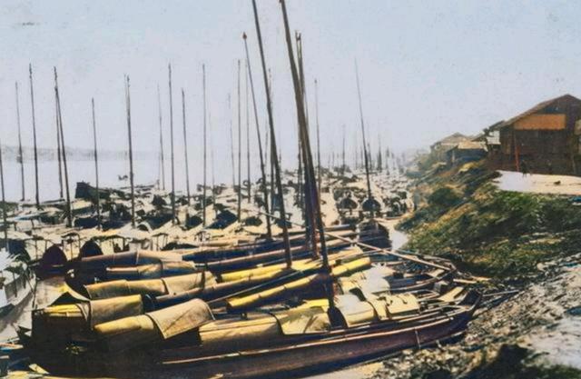 1933年的湘潭江边码头,湖南最大的河流湘江穿湘潭而过,凭借河流水运之利,湘潭自明朝开始便成为湖南重要的“商贸重镇”!看到图中的湘江边停满了很多木船,桅杆林立,这正是湘潭发展繁荣昌盛的见证!